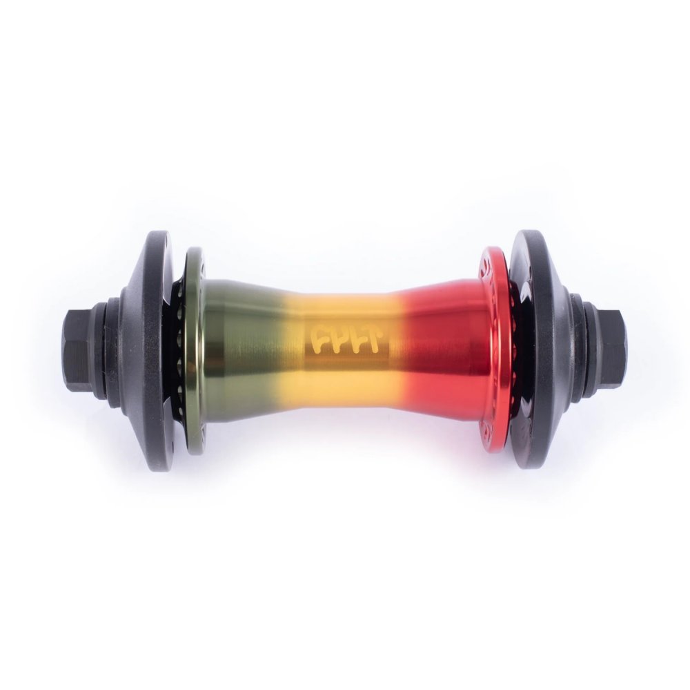Lightweightm front hub from Cult featuring 6061-T6 aluminium hub shell and boasts tiny micro flanges. The Cult hub press fit axle collars with press on nylon hub guards that can be bought separately.