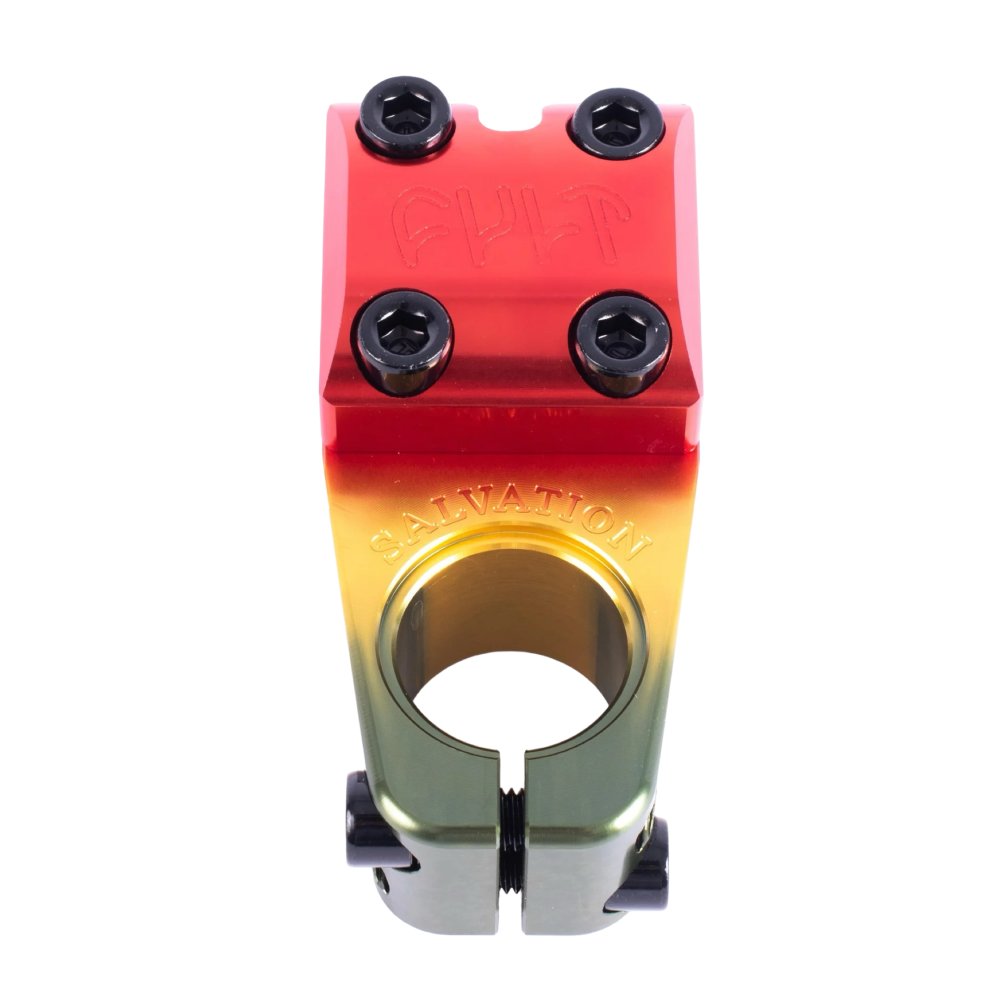 The new Salvation V4 top load stem is wider and beefer then the original Salvation stem. Features improved clamping area, machined Cult logo and Salvation logo, a recessed top for flush compression cap and solid bolts to hold it all tight. Now in shorter 46mm version.