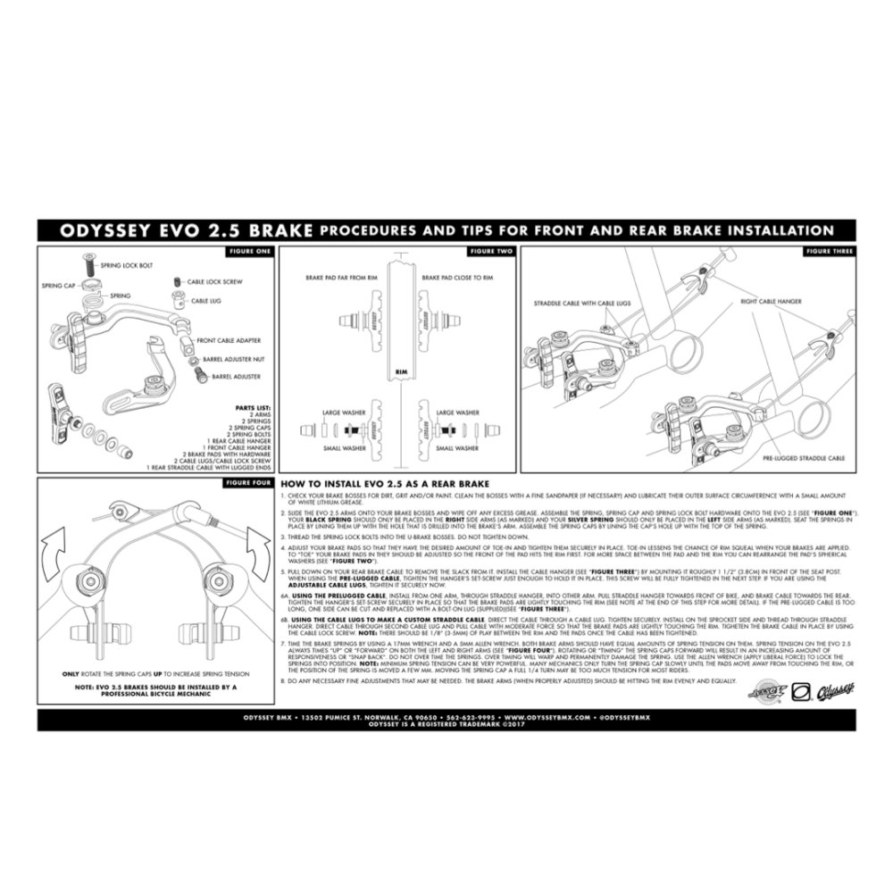 The Odyssey Evo 2.5 U-Brake Kit is built for modern BMX setups, offering increased tire clearance and a strong forged aluminum construction. This all-in-one kit includes everything you need: Odyssey Slim by Four pads, a medium Monolever, Linear Slic Kable, and full hardware for easy installation. The double-lugged straddle cable and curved hanger deliver a smooth, responsive brake feel. Compatible with both front and rear use, it’s a high-value, high-performance choice for riders looking for fast, reliable stopping power.
