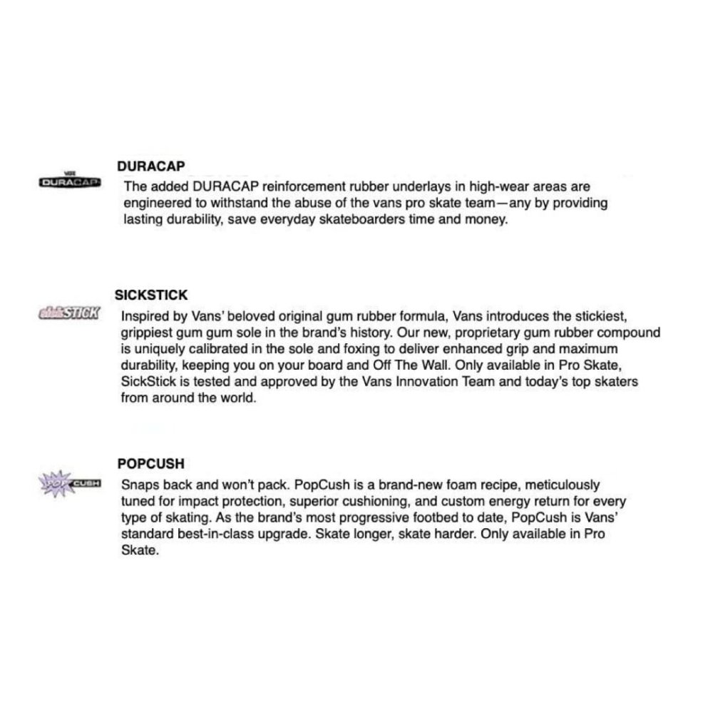 BMX WaffleCup™ is the first-ever construction to deliver the support of a cupsole without giving up the pedal feel of a vulc. Designed with input from the Vans BMX team, it features our SickStick™ gum rubber for next-level grip, reinforced Duracap™ underlays for long-lasting wear, and PopCush™ insoles to cushion hard landings and reduce leg fatigue. Whether you're pushing limits or putting in miles, this construction is made to keep up—no matter how hard you ride.
